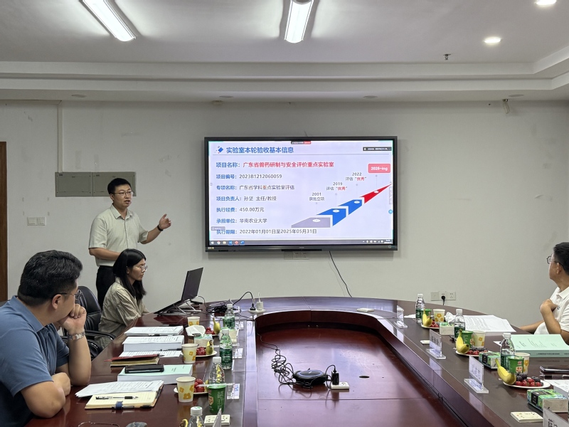 2025年9月12日,广东省兽药研制与安全评价重点实验室学术委员会会议在华南农业大学兽医学院召开。会议通过线上线下相结合的方式开展,实验室学术委员会主任沈建忠院士、副主任丁克研究员、以及委员张继瑜研究员、曾振灵教授、邓旭明教授、薛飞群研究员、梁先明研究员和王贵平研究员参加了此次会议。实验室主任孙坚,副主任陈建新、汤有志及刘健华、丁焕中等多名学术骨干列席会议。会议由沈建忠院士与科研院平台办主任杨瑞春主持,兽医学院党委书记戴雪飞参加了会议。