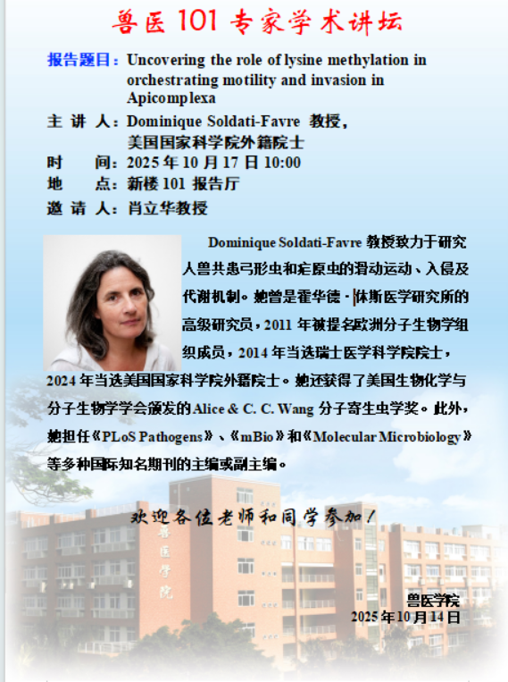 学术论坛(2025.10.15)Uncovering the role of lysine methylation in orchestrating motility and invasion in Apicomplexa