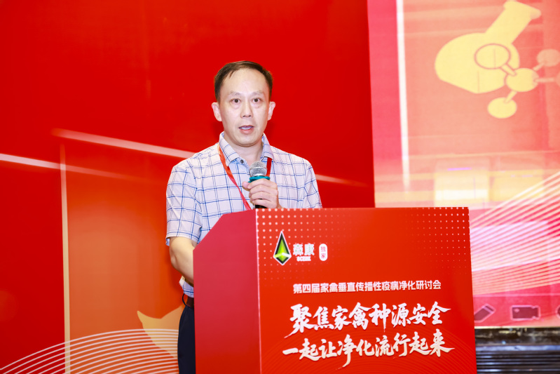学院党委书记戴雪飞上台致辞,他提到家禽疫病净化不仅关系到养殖业的健康发展,更关乎国家动物疫病防控体系和食品安全的整体布局。他从学科建设角度出发,强调了科研创新与人才培养为产业可持续发展所提供的坚实支撑,学院也将坚持以国家战略和产业需求为导向,持续优化学科布局,强化科研平台建设,推动禽病防治领域的理论创新与技术突破。