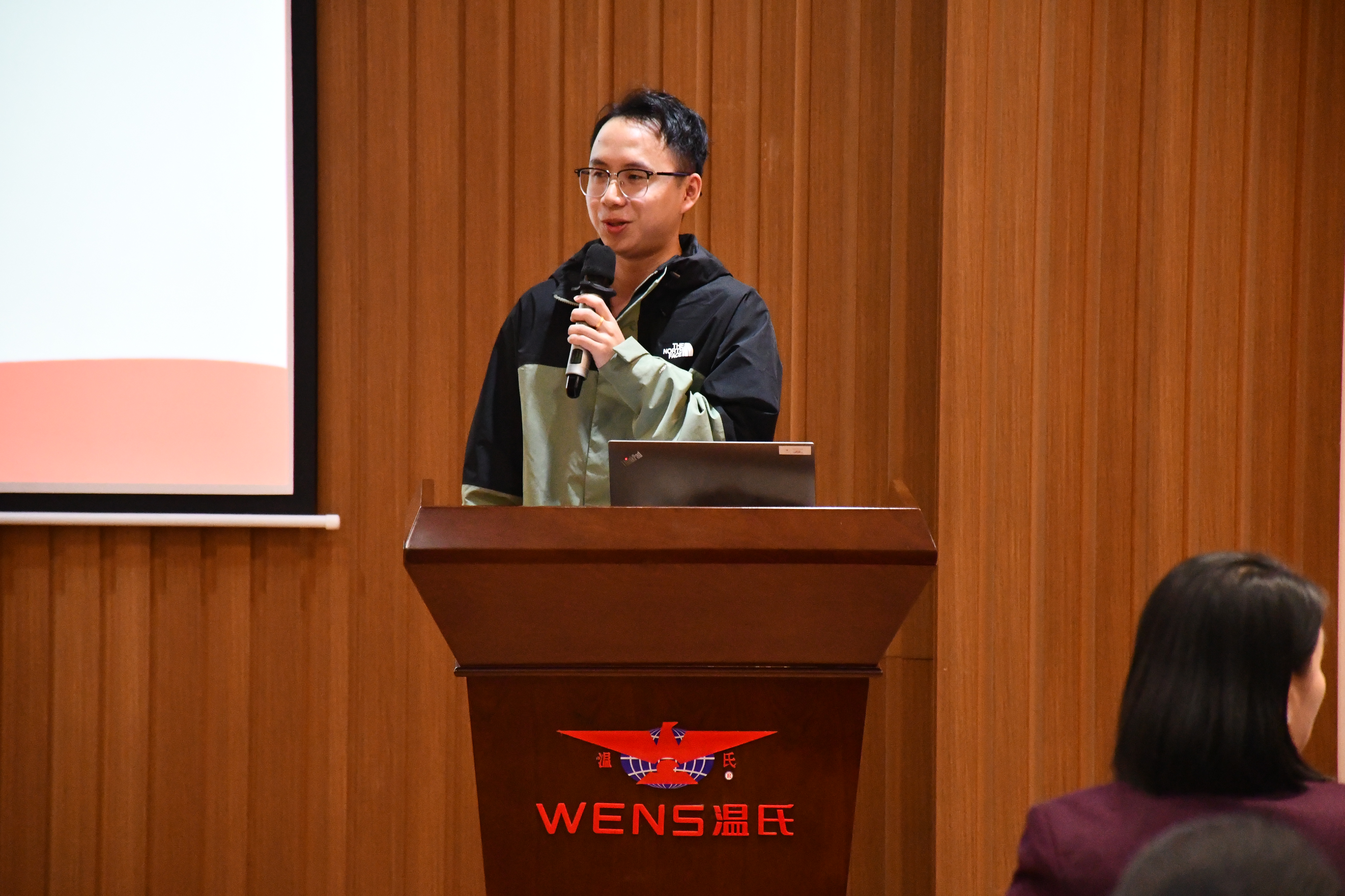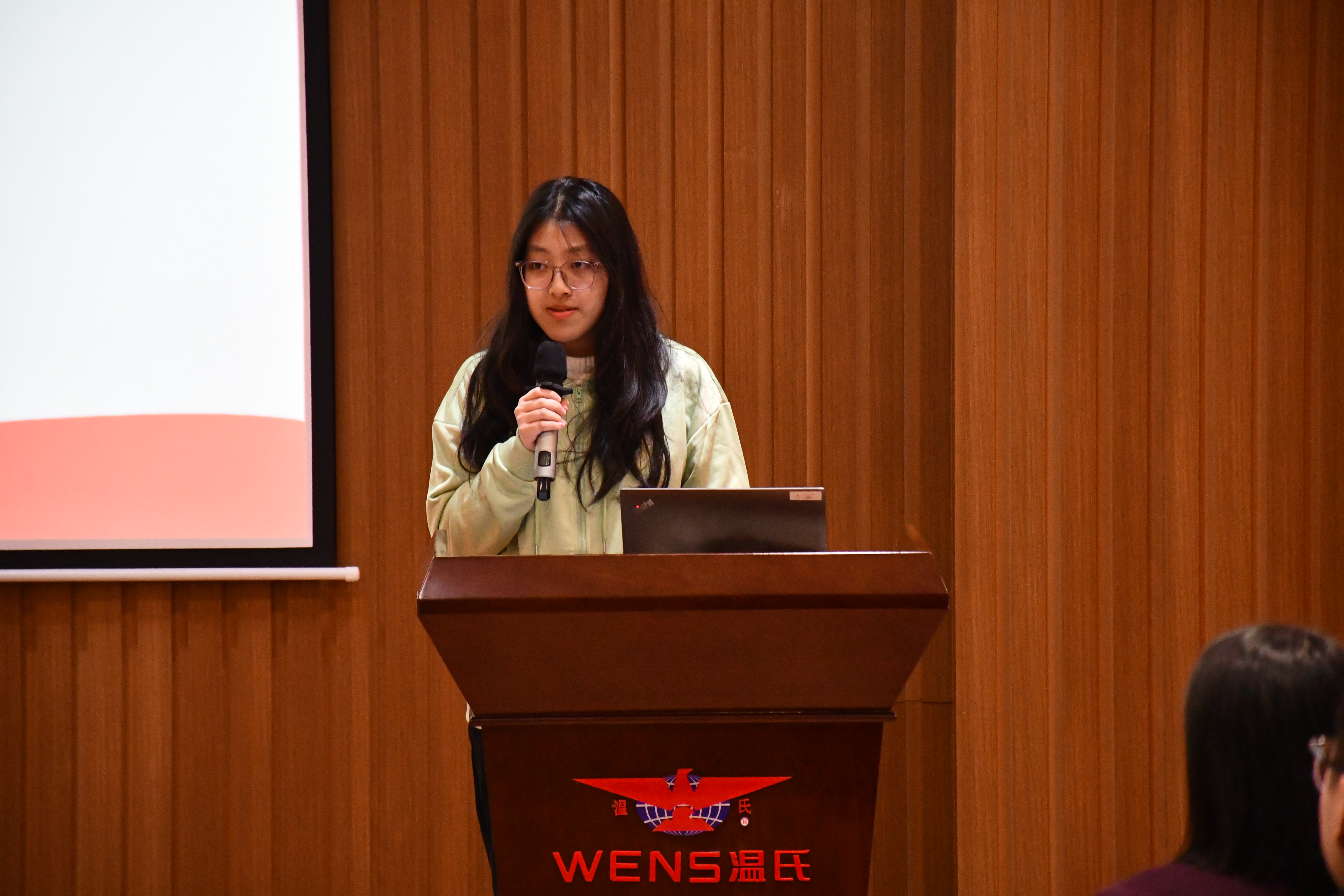 顾婷副教授作为教师代表发言,她表示,担任温氏班班主任既是一份荣誉,更是一份沉甸甸的责任。希望同学们要心怀感恩,传承温氏班优良传统,刻苦钻研、注重实践、回报社会。
