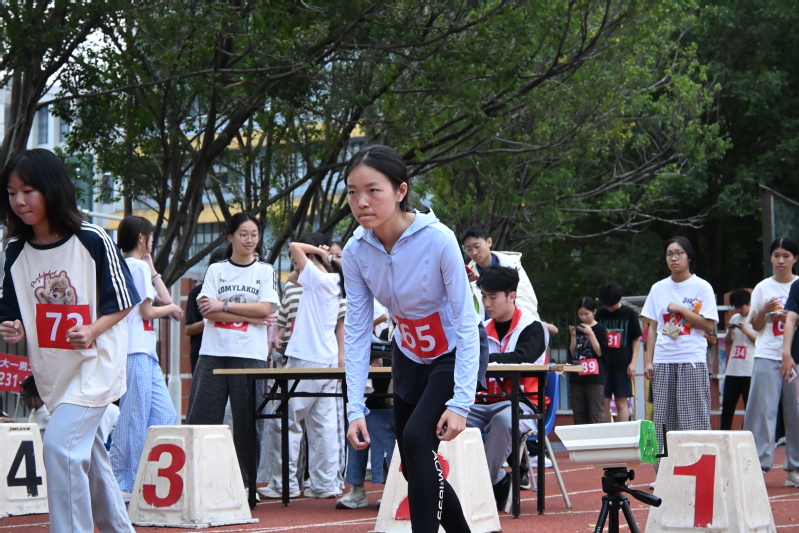 测试现场井然有序,青春活力与运动热情交织涌动。在工作人员与志愿者的悉心引导下,同学们按分组依次进行了身高体重、肺活量、立定跳远、坐位体前屈、50米跑、男子1000米跑/女子800米跑等多个项目的测试。场上同学们全力拼搏,场下师生加油声不断。