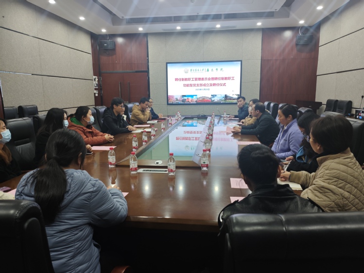 学院党委书记戴雪飞在讲话中指出,聘任制教职工是学院教学、科研、管理、服务工作中不可或缺的重要力量,为学院发展提供了坚实支撑。成立功能型党支部与管理委员会,是学院党委加强队伍建设、完善治理机制、推动事业发展的重要举措。希望功能型党支部充分发挥基层党组织战斗堡垒作用,加强思想引领与人文关怀,增强组织凝聚力,创新活动形式,强化安全稳定意识,团结带领全体聘任制教职工立足岗位、服务大局。希望管理委员会积极承担倾听诉求、反映意见、参与协商、维护权益、促进和谐、服务发展等职责,努力成为聘任制教职工信赖的“娘家人”与“贴心人”。
