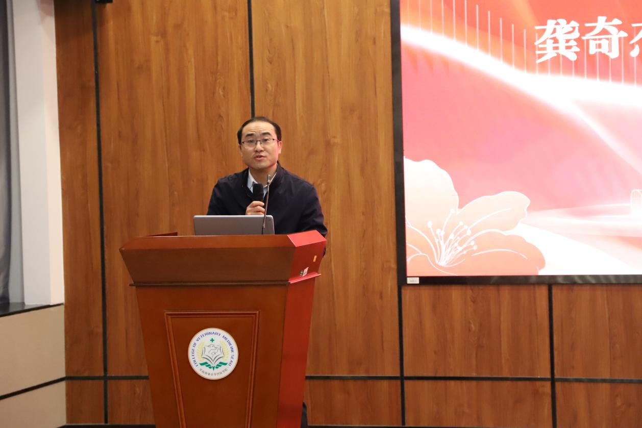 活动伊始,陈建新老师详细介绍了龚奇杰董事长的行业成就与企业发展经验。随后,龚奇杰董事长在致辞中表达了对兽医学院的深厚感情,并表示将积极履行校外企业班主任职责,助力学生成长。