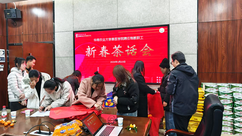 情意绵绵辞旧岁,暖意融融迎新春,和风习习开新景,共话发展启新程。2026年1月23日上午,华南农业大学兽医学院举行聘任制教职工新春茶话会,现场气氛温馨热烈,会议由学院聘任制教职工管委会秘书长庄克珩主持。