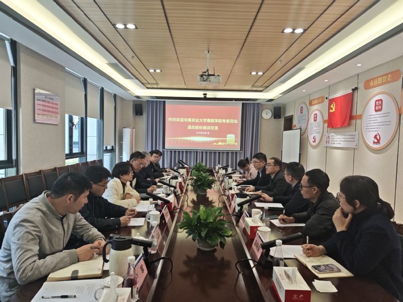为进一步深化校企交流合作,2月1日,兽医学院党委书记戴雪飞带领学院党政领导班子一行赴温氏集团研究院开展联学共建活动。温氏集团副总裁兼技术总监张祥斌,集团技术部(研究院)副部长王连想、陈丽等相关业务负责人接待了学院一行并参加了座谈会。