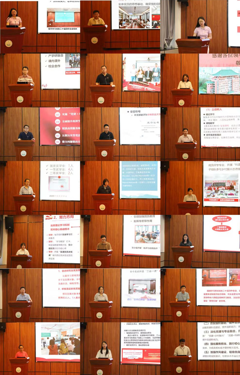 会上,各党支部重点围绕学习贯彻习近平新时代中国特色社会主义思想和党的二十大、二十届四中全会精神,落实学校和学院2025年党建工作要点等方面依次进行现场述职,全面梳理了过去一年支部工作开展情况,既总结成绩与展示亮点,也深刻剖析突出问题和薄弱环节,并提出了下一步的改进思路和具体举措。