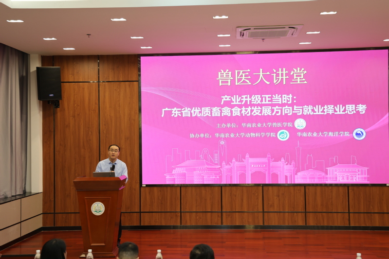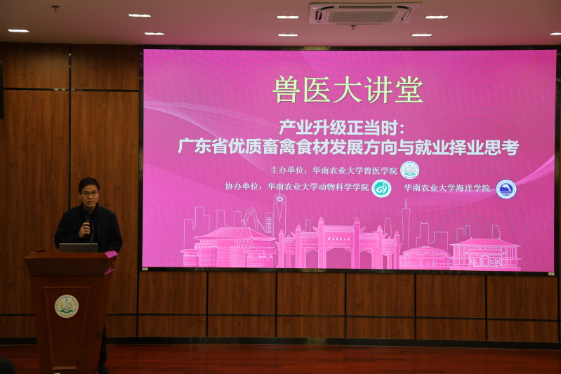 为深入贯彻落实党中央、国务院关于高校毕业生就业创业工作的决策部署,扎实推进“百万英才汇南粤”人才引育行动,精准对接粤港澳大湾区畜牧兽医产业高质量发展人才需求。4月24日,华南农业大学兽医学院举办“兽医大讲堂——产业升级正当时:广东省优质畜禽食材发展方向与就业择业思考”专题活动。活动同步开展校领导访企拓岗专项行动,政企校三方齐聚一堂,共探产业发展新趋势、共商人才培养新路径、共拓毕业生就业新空间。
